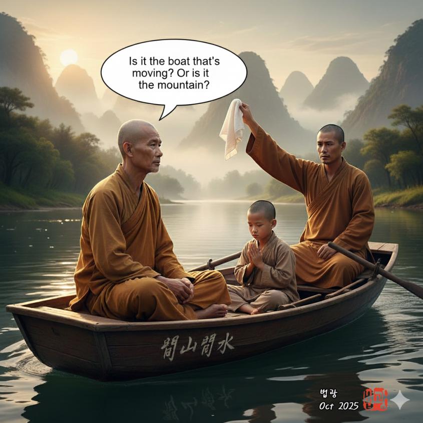 "배가 움직이는 것이냐? 아니면 산이 움직이는 것이냐?"